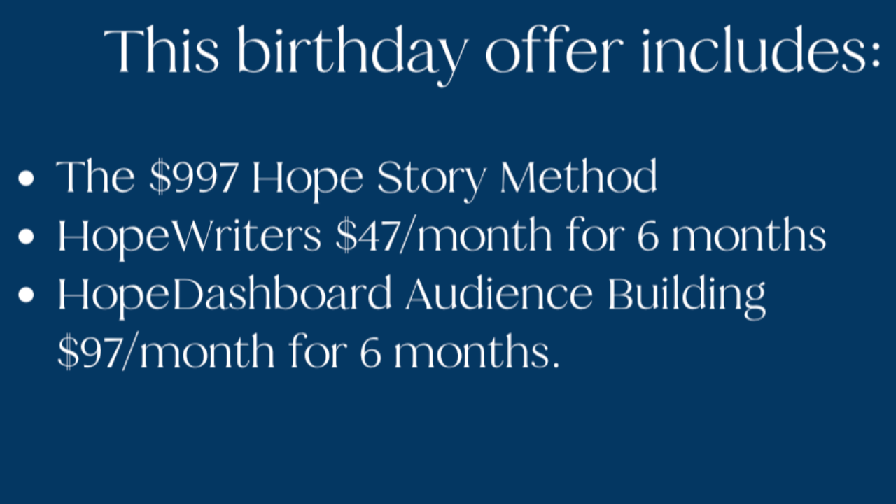 Need more help with your book? Add a one-on-one zoom coaching call with Brian Dixon, CEO of hope*books. Share your heart, clarify your vision, and create an action plan to make your book a reality. Just click the checkbox to add this call and get 50% off your coaching. Normally $397 - now for only $197 with your Hope Story Method.